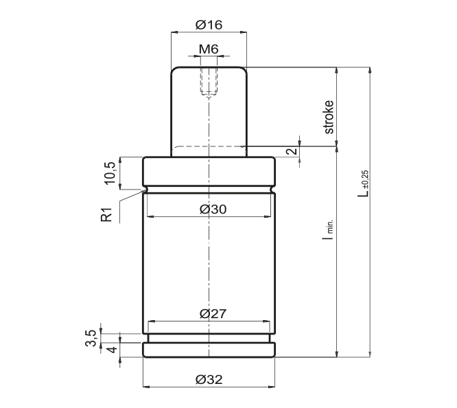 | L mm. | I min. Mm. | KURS - stroke max. mm. | daN | Model |